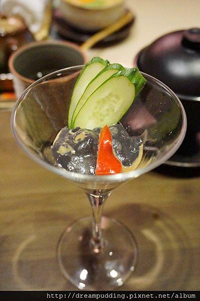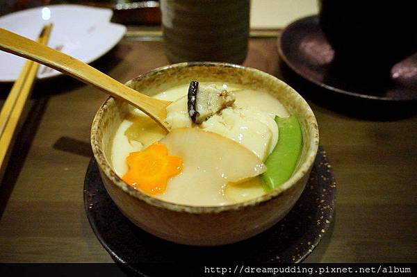 由豆漿跟黑芝麻組合成(沒記錯的話>////<),搭配的是白芝麻醬汁,口感軟Q,有點像麻糬,但又比麻糬更細緻,還蠻好吃的。