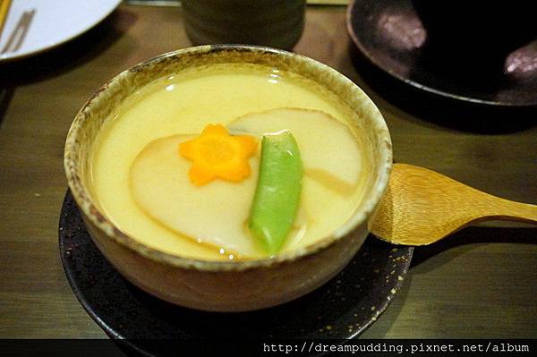 口感滑嫩帶湯汁,嚐起來順滑帶點細微的鮮甜,這蒸蛋非常棒!