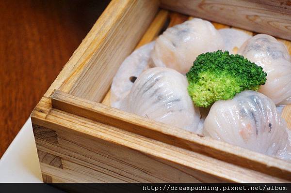 松露水晶鮮蝦餃,薄透帶Q的餃皮裡面看到的小黑點就是香氣濃郁的松露碎,皮Q且內餡緊緻帶點細細的脆感,還有些些微的肉汁,這個好吃^。^