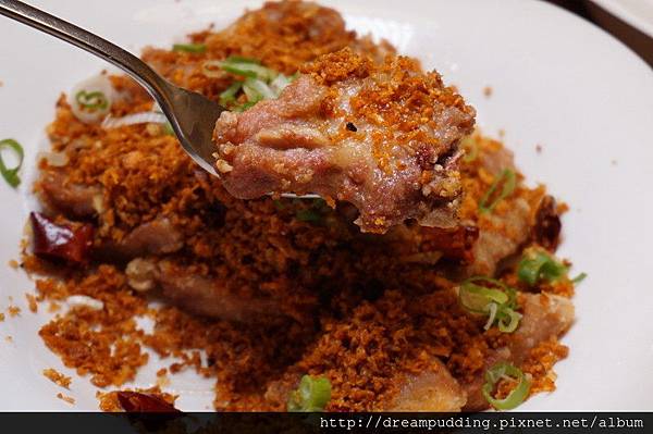 無錫嫩子排,這也是上回來有吃的,子排經紅穀米及佐料醃泡入味,再以大火油炸,燴炒過後連軟骨都是Q軟的,肥肉的部分很少,大多是細緻的瘦肉。