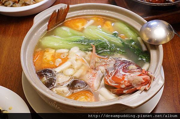 生滾時菜鮮魚湯,這也是新菜,鮮魚視當天進的漁獲而定,這天是海雞母笛鯛,魚肉鮮甜細緻;湯底使用主廚私房高湯底再加入牛番茄、綜合菇類及當季食蔬下去熬煮,口感清甜帶鮮美,很好喝,這道我們大家都很喜歡。