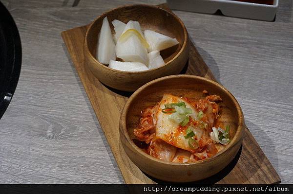 開胃小品香柚蘿蔔跟泡菜,蘿蔔爽脆帶點清甜,好吃;泡菜口感濃厚帶點細微的辣。