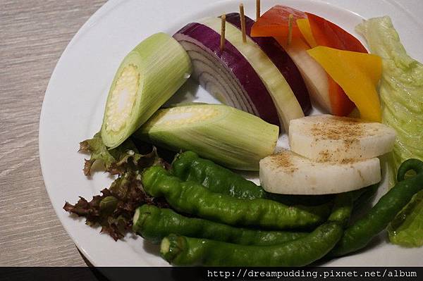 玉米筍烤起來雖然燙口,可是鮮脆好吃,洋蔥烤到半生不熟帶點辛辣的脆感也很不錯。