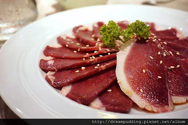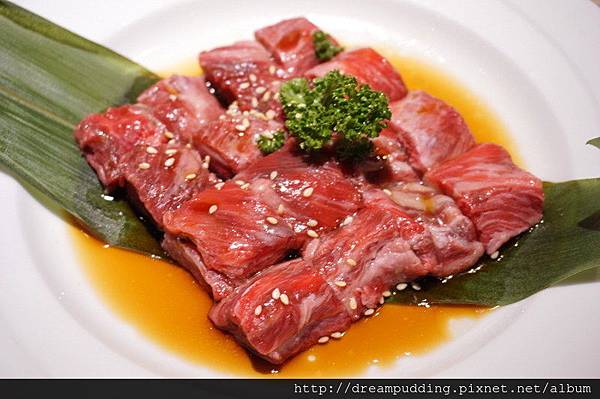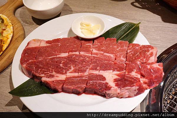 這是無骨薄切牛小排,牛小排的花紋就是不一樣,未烤口水就先流了。