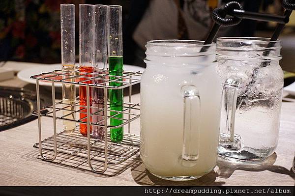 試管雪碧&可爾必思,彩色試管裡的糖漿加進飲料讓口感增加了甜意。