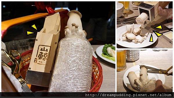 每份套餐會附一個太空菇,新嫁娘的喜氣謝籃裡裝著太空菇跟金剪刀還有切菇器,將杏鮑菇朵朵剪下後,再將其送入切菇器就會變成薄片出來喔!