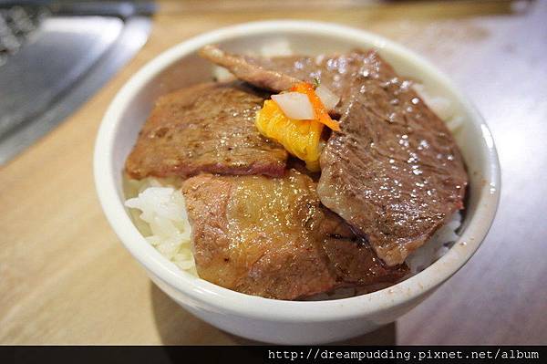 這個我忘記是種肉類中的哪一個了>////<,忘記是霜降還是特選牛小排,牛肉味明顯濃郁,大片的肉配越光米飯吃起來很過癮。