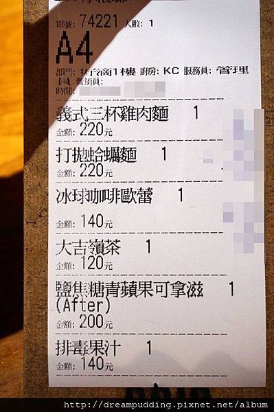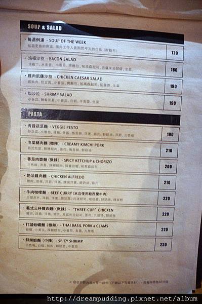 義大利麵口味還蠻特別的,有點台西合併的感覺,三杯雞肉麵耶!價位都是單點,不收服務費。