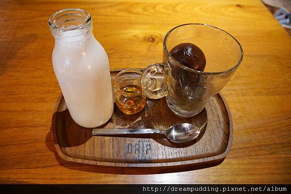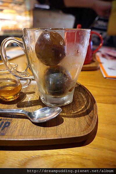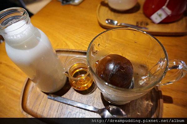 咖啡凝結成冰球,附上糖漿跟熱牛奶,甜度跟拿鐵牛奶濃淡能自己調整