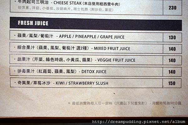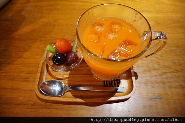 排毒果汁(紅葡萄、蘋果、鳳梨),NT 140元,現打果汁通常都不會太大杯>。<,不過還有附上水果,幾顆。