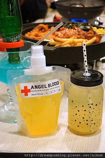 圖右是蜂蜜檸檬茶,NT 65元,星星瓶子跟圓點吸管很少女心;圖左是打點滴水蜜甜,NT 65元,口感上比較甜一些。