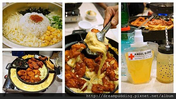 餐點主要販售韓式料理的鍋物類,拳頭飯、大醬鍋、年糕鍋、起司雞鍋,鍋類有許多配料可以加點,還有一些特色飲料跟小點心;起司雞鍋2人起鍋,最多能3人享用,每個人低消100元,餐點份量多,價位很平價。