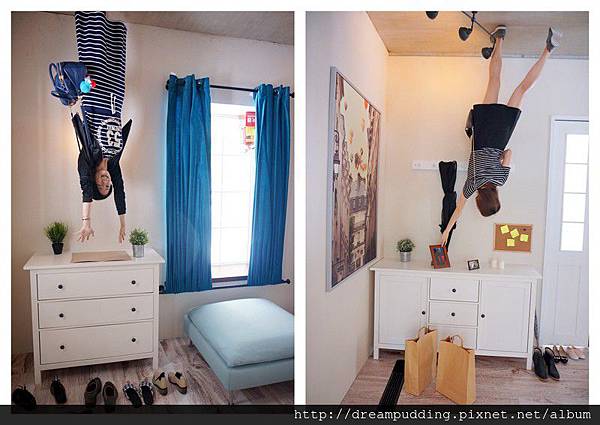 一上樓就開始驚喜連連,每個你所熟知的家具都是顛倒的擺放著,不過拍照也要很抓角度就是>////<