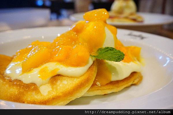 目前的季節限定鬆餅是芒果克林姆。