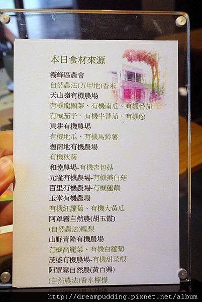 由於是農會經營,食材來源當然是可以讓顧客吃得十分安心加放心,大多是有機自然栽培,而食材來源也都寫得十分清楚。