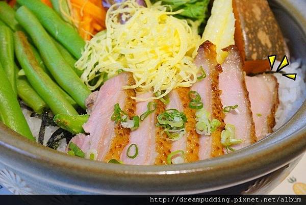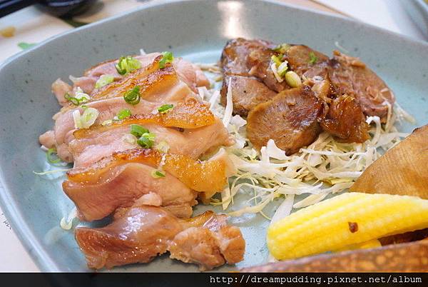 這個雞肉好吃耶!第一眼看還以為是鴨胸,皮的部分帶點Q彈,肉的熟度口感不柴,有著些微的軟嫩,味道也夠,不過雞肉的米飯就沒有豬肉套餐那我愛的甜甜的醬汁。