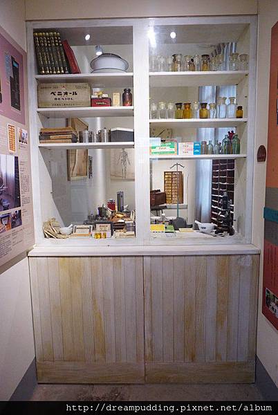 館內整修時保留著部分當初的設施,這個應該是藥櫃。