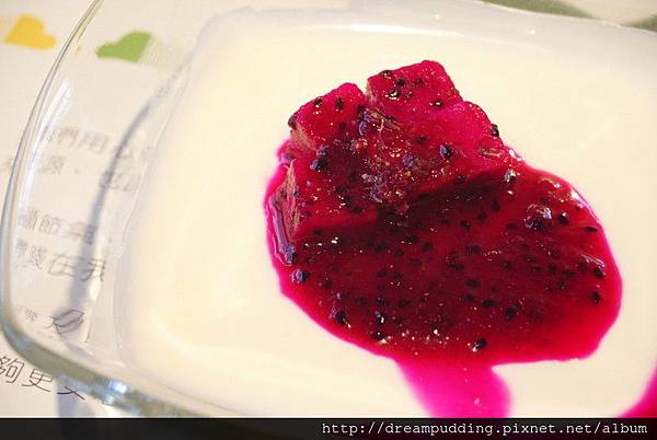 這天的甜點是火龍果奶酪,口感濃厚,火龍果果醬甜的細微,有著些微果香感,我很歡這組合呢!