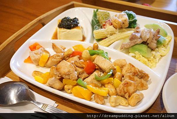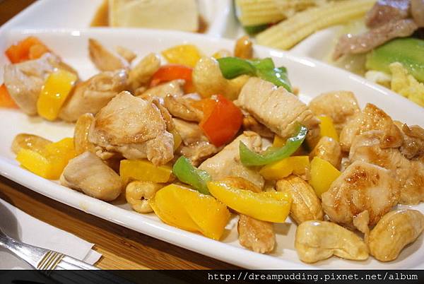 腰果跟雞丁一塊烹調,還加了甜椒;甜椒脆甜,腰果也不會過軟,保有一絲絲香脆感;雞丁略有嚼感,不乾柴;整體口感清爽,也很不錯吃。