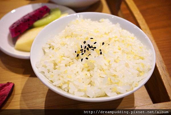 這個米飯跟我上次在後驛冊店吃的好像,所以那個黃黃小點也是阿里山小米嗎>/////<