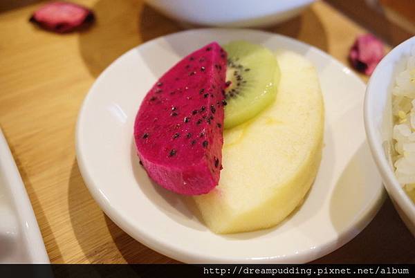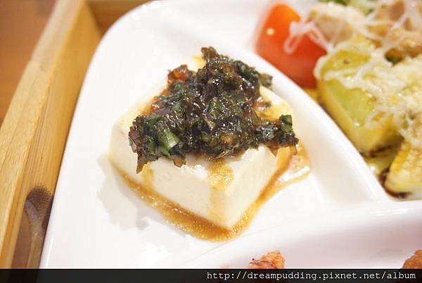 配菜之一是豆腐,上頭是切碎的皮蛋根不知道什麼菜>////<,不知道是不是梅干,哈。
