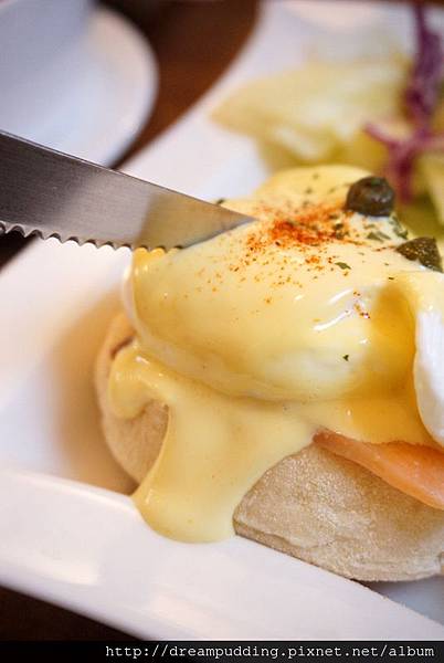荷蘭醬完美的跟半熟蛋液混合在一塊,這就是班尼迪克蛋的誘人之處。