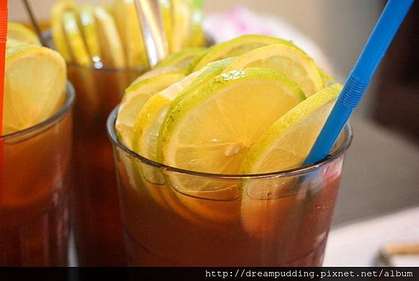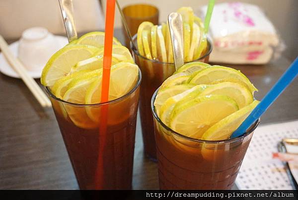 服務人員說先喝一口紅茶再開始戳檸檬,紅茶單喝就很棒耶,茶味香濃帶甜卻不膩口,而戳檸檬之後讓其新鮮汁液跟紅茶混合,更增加了清新香酸感,是好喝的凍檸茶。