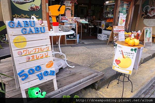在湯布院往金鱗湖的路上還經過很有名的史努比茶屋,因為地震後遊客稀少的關係,沒有人在排隊,可惜我們午餐吃得太飽,完全無法再進食,只好放棄>////<