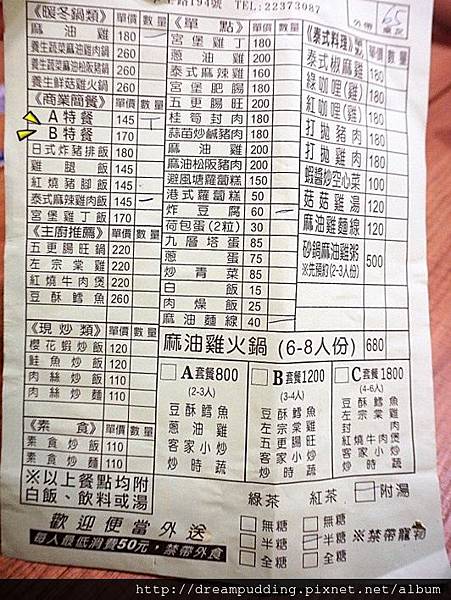 價位很平價,大多一百多或兩百多塊,有簡餐也有單點,簡餐還有附白飯跟飲料或湯二擇一,飲料還能選擇甜度;而每日會有幾種單點類主食做成A、B特餐,就要詢問服務人員了,劃完單之後到櫃台結帳就可以等待美食上桌囉。