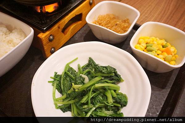 除了鍋類主食之外,還附了3樣配菜及一大碗白飯。