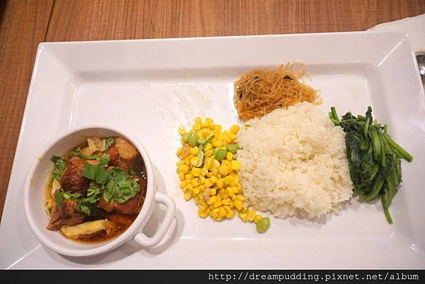 配菜份量也都給的很多,有我極喜愛的菠菜,玉米粒炒的也是毛豆而不是我不敢吃的豌豆,冬粉口感也很Q軟帶點彈性,很有媽媽家常菜的味道耶。