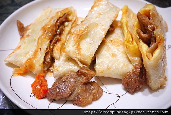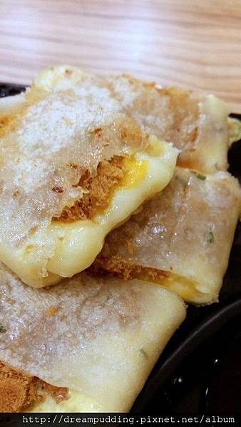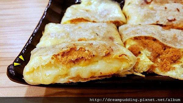 肉鬆蛋餅,NT 30元,加乳酪絲多10元,蛋餅皮可以選擇一般或是酥皮口感。