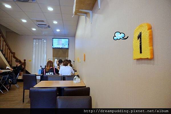 座位數不多,每張桌子的編號都在牆上的吐司上面。