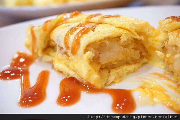 裡面包著薯餅跟起司,口感濃郁,番茄醬還增加了甜味,裡面的薯餅也不會太軟,還不錯,不過這個吃完一個幾乎快飽了耶。