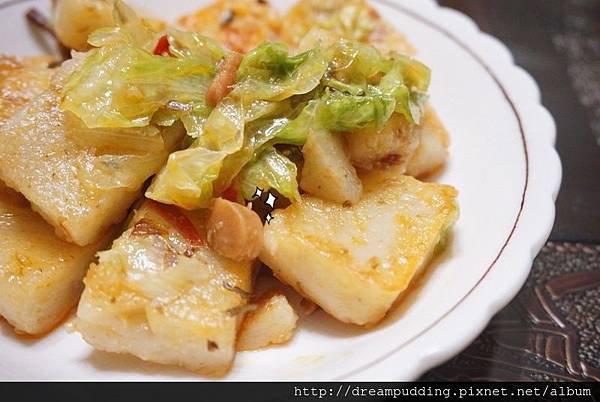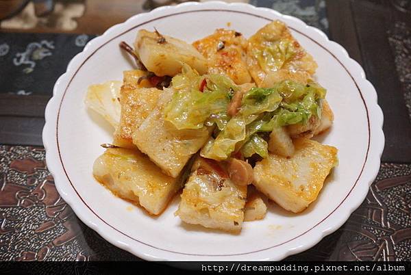 這個我挺喜愛的,XO醬真材實料,有干貝跟小魚乾,口感濃厚微辣,蘿蔔糕軟燙,還加了生菜增加咀嚼的清脆感,好吃。