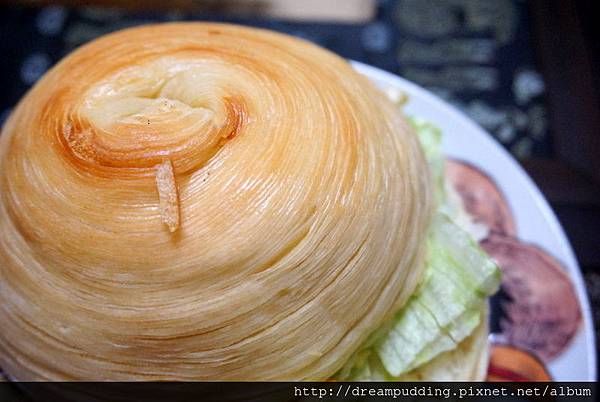 漢堡皮不同於別家,使用千層堡,口感上比較香甜不膩口。