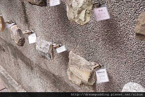 還有一面上頭標註著各種岩石的學問牆。