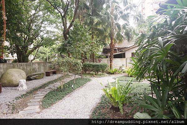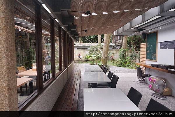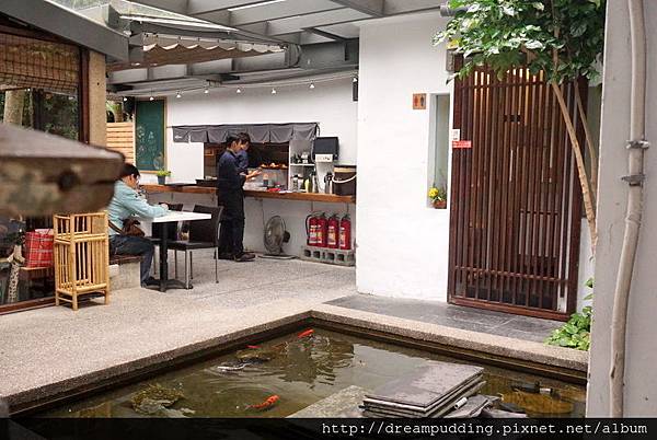 另一邊的半室外用餐區還有小池塘呢!