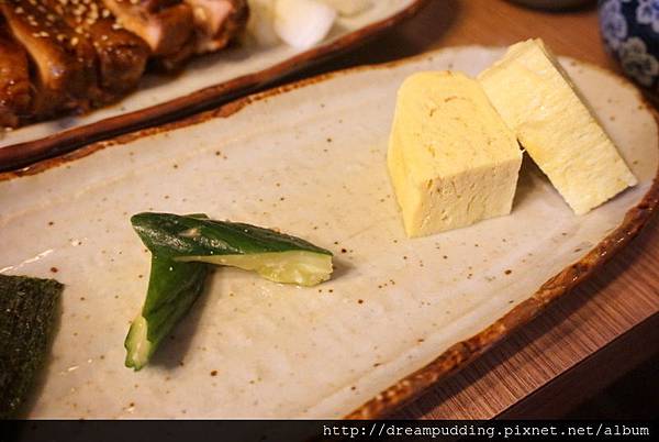 漬物小黃瓜清鹹的自然,帶有些許脆口;蛋料理為玉子燒,口感緊密帶點蓬鬆。