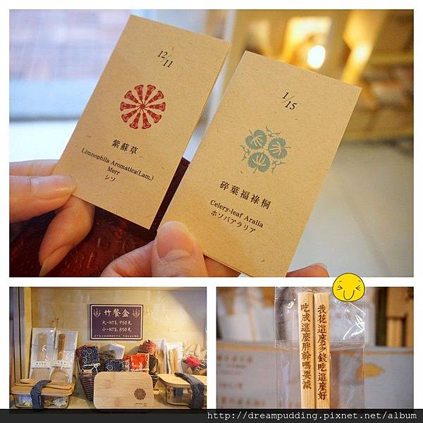 用完餐之後,還能憑發票到旁邊的文青小店換紀念品喔!這次是生日花語小卡呢!而且文青小店裡賣的商品還蠻有趣的,圖右下的檜木筷子上面的標語真是貼切到不行啊,哈。