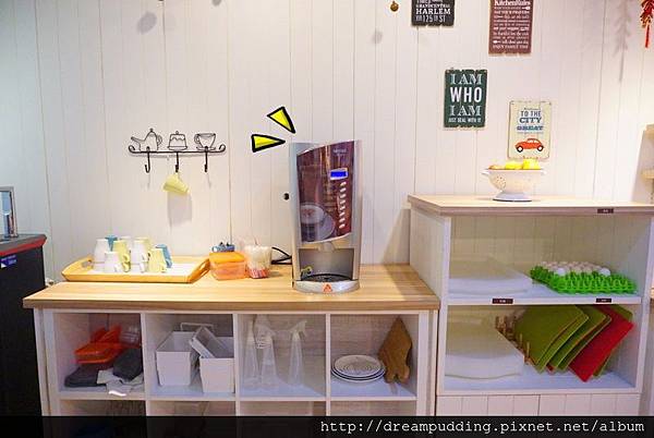 日子除了一般的茶包之外,還有一台濃縮咖啡機可以沖泡咖啡、奶茶跟可可,可可香甜濃郁,我跟友人都喝了好幾杯,真的是無限暢飲喝到有飽@。@