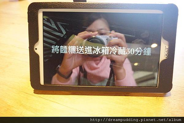 選完自己想製作的蛋糕種類之後,就可以領你的平板老師,開始看著影片還有文字檔開始製作啦(灑花),這回我選的是檸檬塔。