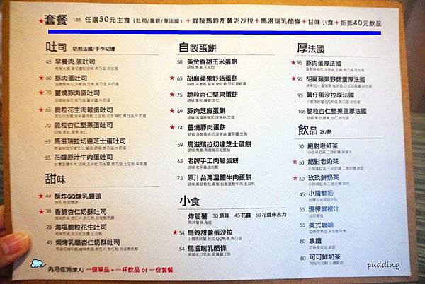 玖玖早餐看了好多部落客分享,評價都很不錯,這天早起要去忙碌,9點就得到達目的地,口袋名單找了許久都找不到8點前營業的早午餐@@,後來總算找到了7點30分就開始營業的玖玖早餐,就決定是你啦(奔)