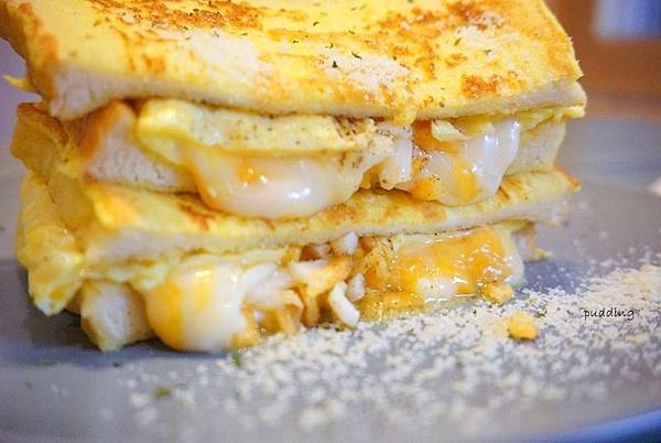 是說這起士隨著熱度緩緩融化的表情真是讓人想尖叫,裏頭還加了美乃滋,整體口感香濃潤澤,有著起士微微的鹹味,吐司口感蓬鬆。