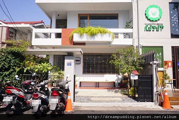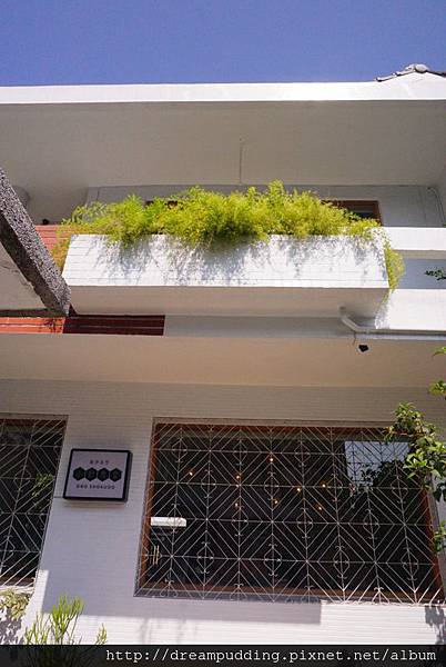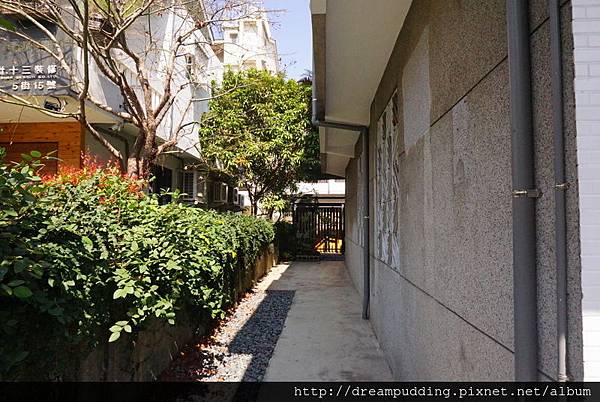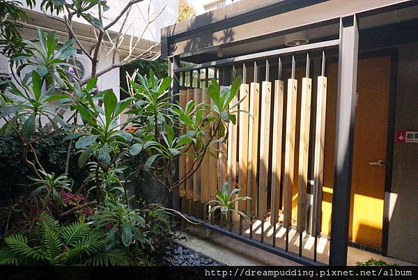 從大門進來,沿著灰牆跟綠葉營造出的小徑走,入口就在盡頭處。