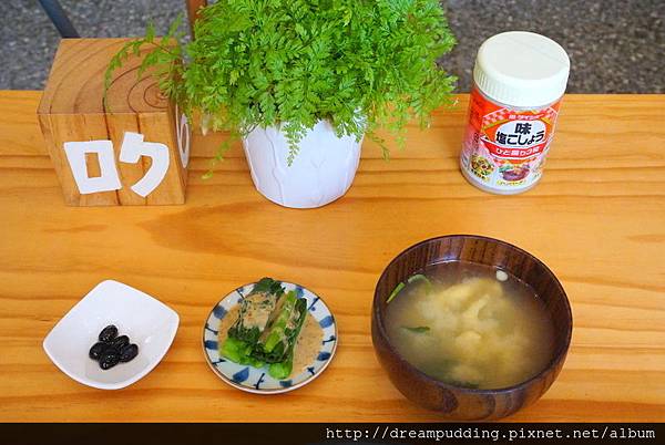 套餐均附沙拉、漬物、小鉢菜、白飯及味噌湯;而白飯跟味噌湯吃完後可續一次,我們這天吃完都覺得有飽,所以都沒續@@