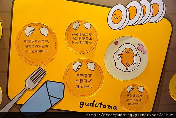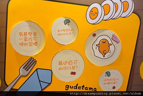 入口處有個蛋黃哥自問自答的轉圈圈版,每個問題跟答案讓人看了都忍不住會心一笑。