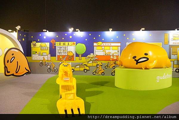 蛋黃哥懶得展台中是在高鐵旁的大台中國際會展中心展出,到2017/03/12就結束了,所以喜愛蛋黃哥的,或買了票還沒去看的,要記得在3/12以前去看展出喔!