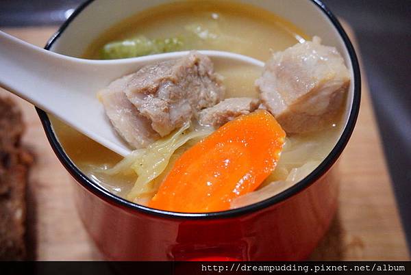 由於加了義大利香料下去燉煮,所以湯頭濃郁且帶點香辛感,在有點涼意的晚上喝,身體都暖和了起來。