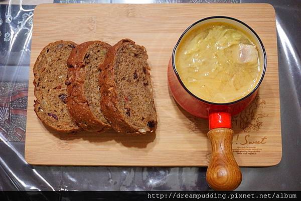 這次我就將它當成正餐來享用,搭配馬可先生買的五穀麵包。